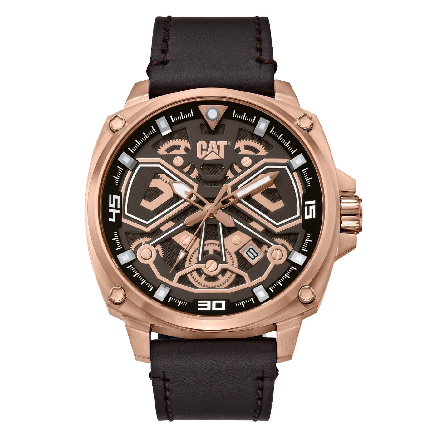 CAT AJ Watch - Black/Rose Gold with Leather Strap + FREE STICKER PACK