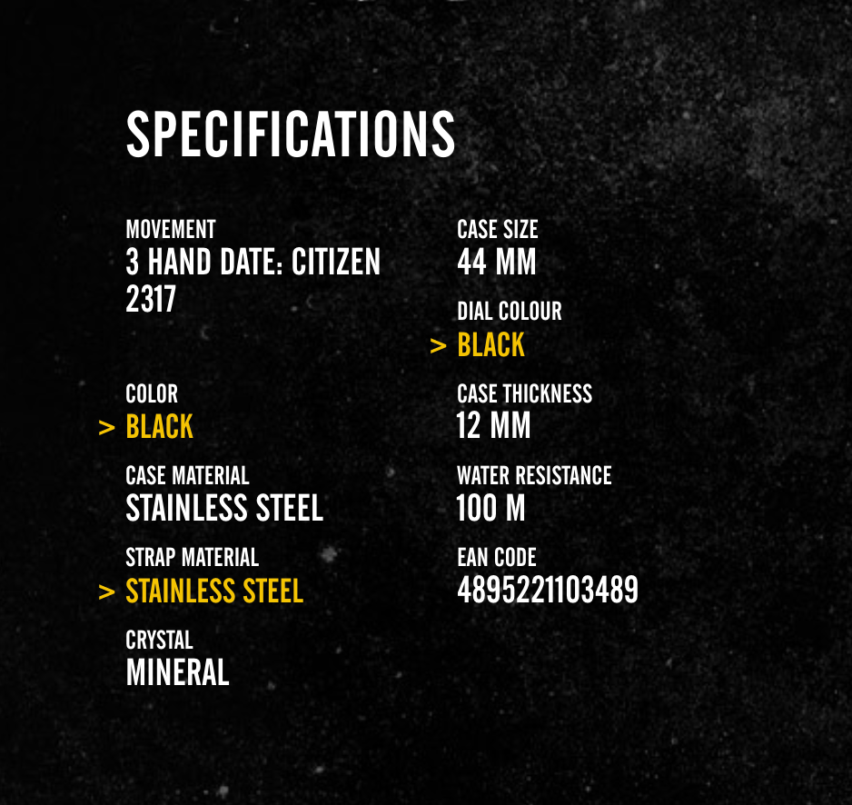 The clean, high-contrast face is easy to read at a glance, while the stainless steel strap ensures a secure and comfortable fit throughout the day. Designed for reliability and built to handle tough conditions, it’s powered by a dependable 3HD Citizen 2317-20a movement and protected by a tough mineral crystal.
