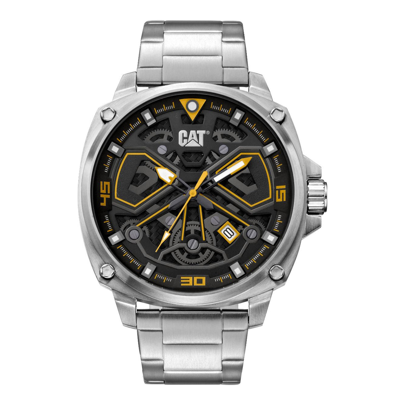 CAT AJ Watch - Black/Yellow with Stainless Steel Strap + FREE STICKER PACK