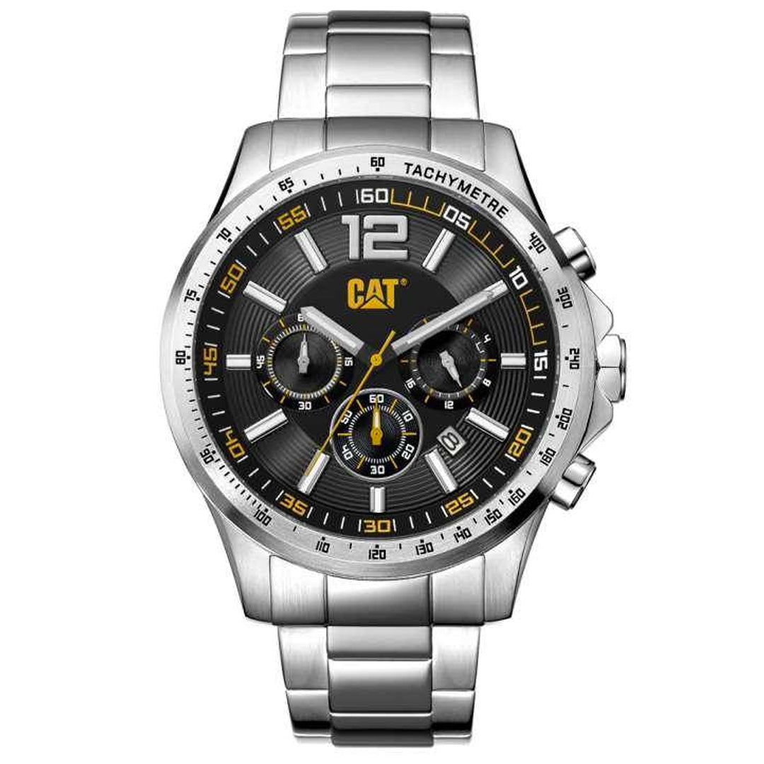 CAT Boston Chrono Watch Black/Yellow - Steel + FREE STICKER PACK