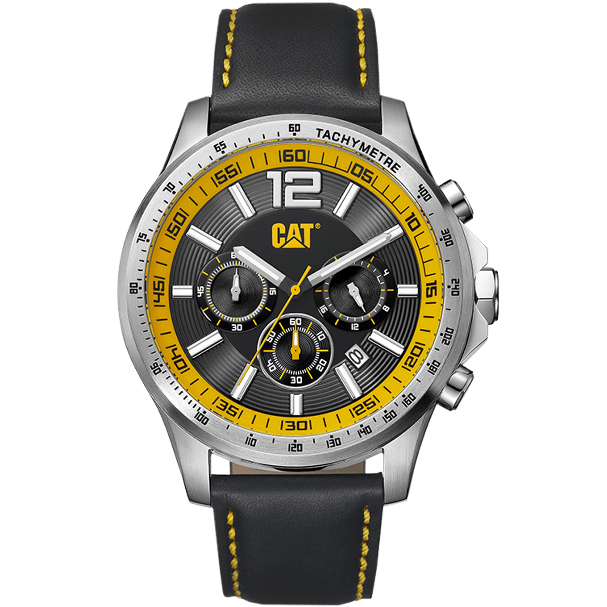 CAT Boston Chrono Watch Black/Yellow with Leather Strap + FREE STICKER PACK